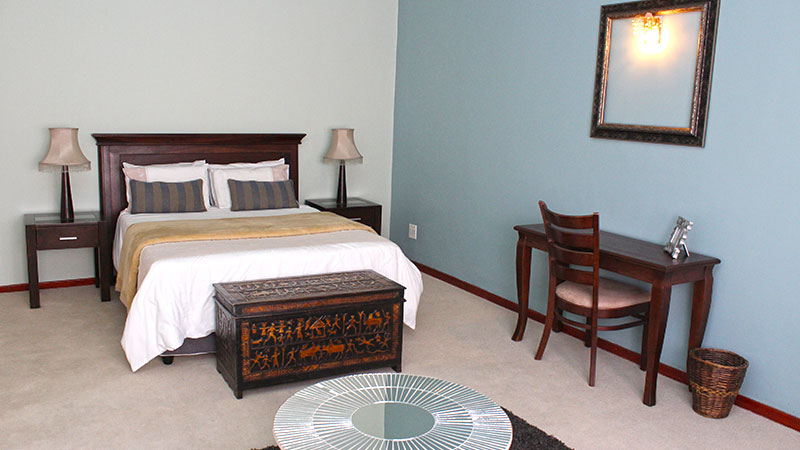 Stylish spacious room in shades of green with a Queen bed. This room has a garden view and the surrounding trees for your enjoyment, our guests love the Zen environment provided to them.